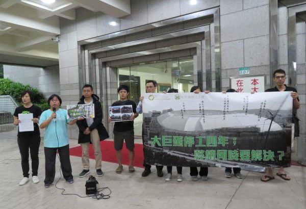 一早聚集在市議會門口抗議的環保團體則共同質疑弊案何時解決。蠻野心足生態協會律師蔡雅瀅指出,2015年5月20日台北市政府都發局以大巨蛋多處主要構造與核定之建照圖不符為由,依建築法第58條規定勒令停工;其後並預告將以「違反建築法第58條、工程品質重大違失」及「未於履約期限內完成興建並取得使照」等違約事由「終止契約」,但後來卻遲遲未終止契約,柯市長並在去年底說出:不拆就是要蓋,不然要幹什麼?日前最高行政法院確定判決認定遠雄違反建築法第58條,柯市長向媒體表示:只要拿到新建照,即可復工。讓長期關心大巨蛋案的民眾、團體非常失望。