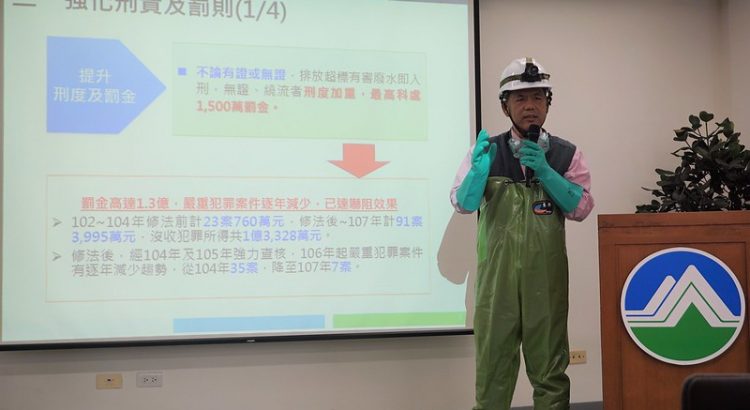 2013年爆發日月光半導體廠廢水污染後勁溪的事件後,社會各界對水污染防治法罰則應加重逐漸凝聚共識,並於2015年2月4日修法生效。環保署26日召開記者會表示,修法迄今已有5年以來,對嚇阻污染確實發揮功效,尤其刑事罰金高達1.3億、行政罰鍰高達15.7億、追繳不法利得高達0.2億,民眾檢舉獎勵金最高曾發給1,000萬。嚴重污染河段長度比率由90年13.2%大幅下降至107年3.8%。