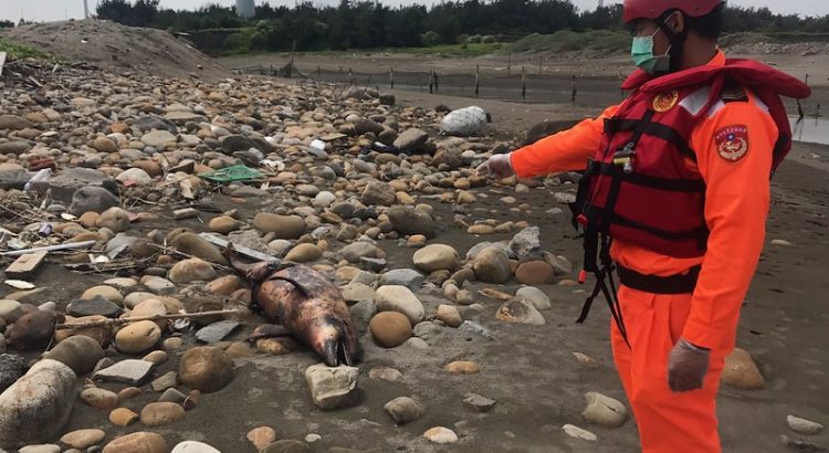 海洋委員會海巡署北部分署第八岸巡線上巡邏組,14日上午在桃園市觀音區大潭進水口岸執行巡邏時,發現一隻死亡瓶鼻海豚,經由中華鯨豚協會人員確認後,並解剖完成組織採樣後,由巡邏人員協助就地掩埋。