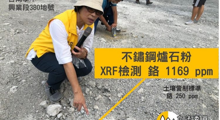 針對立委陳椒華現勘地點(興業段240、380、381、387、388、61、61-1、61-2、61-3等多筆工業土地),環保局事業廢棄物管理科表示,已於9月17日陪同南檢會勘。至於爐碴(石)加工後產品回填土地或堆置於工業用地等行為是否合法,應視時空背景的法令規定。