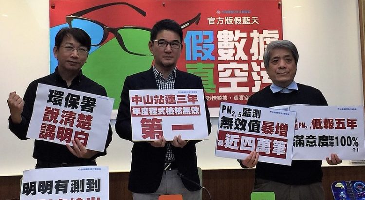 台灣健康空氣行動聯盟6日召開記者會,指控環保署PM2.5監測數據造假,2018年近4萬筆無效,林口、橋頭站二個月數據全無效,要求環保署說明,為何2017~2018民進黨完全執政這二年,PM2.5無效數據暴增?希望環保署用要求廠商的標準來自我要求。