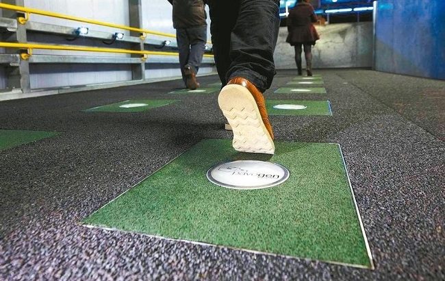 巴西Pavegen公司的智慧地磚,可把踩踏的動能轉換為電力。Pavegen與Shell LiveWIRE合作,在巴西貧民窟重建一座足球場,鋪設智慧地磚,利用民眾踢球時產生的電力提供照明。